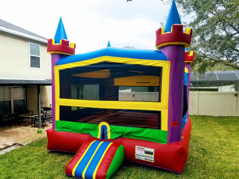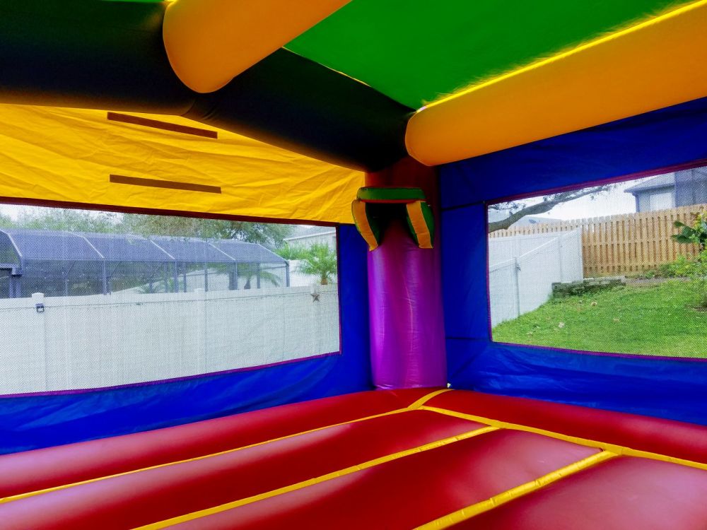 A Larger size bounce house for more room and more fun for friends and family. For large or small events, the Camelot guarantees enough room for all. It has a basketball hoop inside to complete the fun.