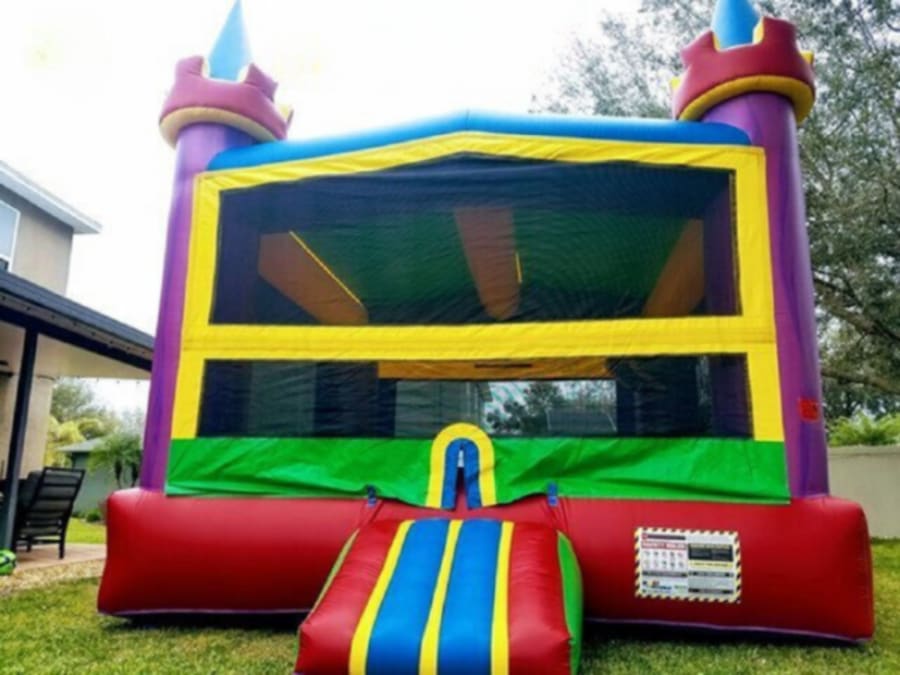 A Larger size bounce house for more room and more fun for friends and family. For large or small events, the Camelot guarantees enough room for all. It has a basketball hoop inside to complete the fun.