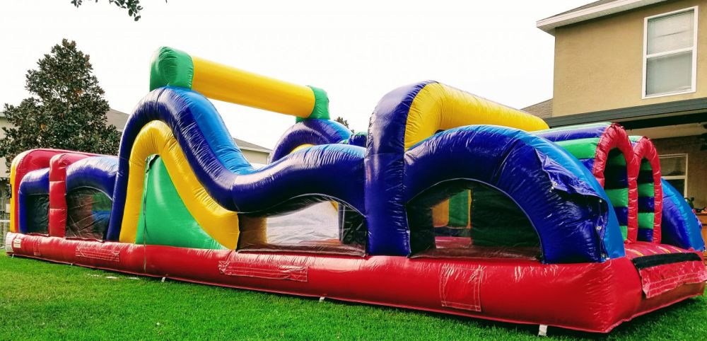 Part of the Extreme obstacle course collection. Welcome to the 40ft long by 14ft tall by 14ft wide dual-lane AMERICAN NINJA race-style obstacle course. It includes 10 challenging elements and a 6ft. tall climb and slide. This course has all the features needed to have fun and get amazing exercise. Let your ninjas shine on this course... CHALLENGE EVERYONE!!!!