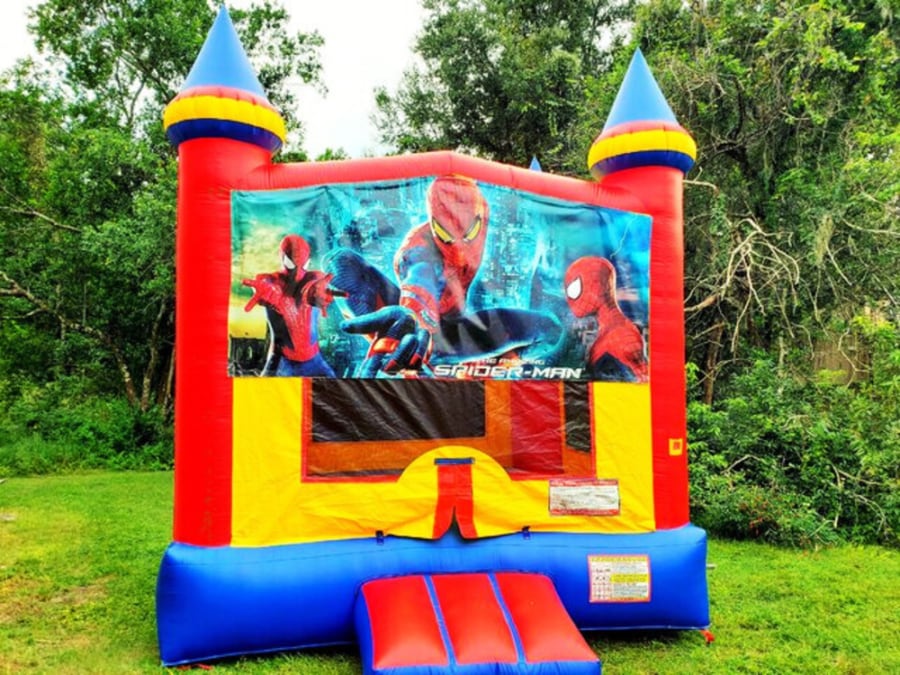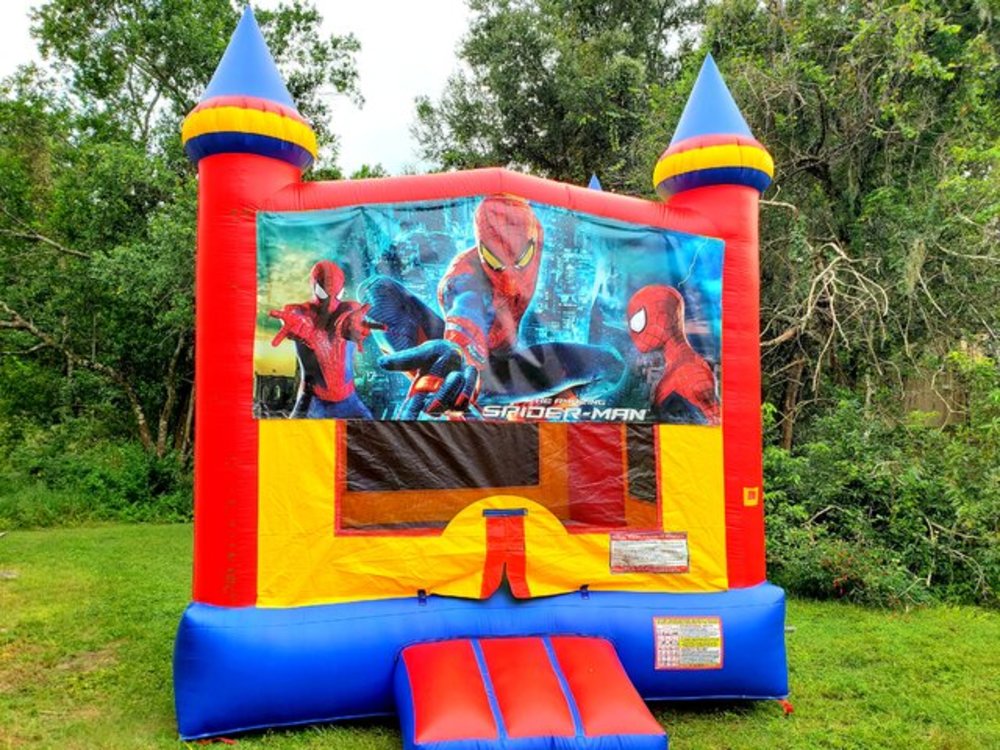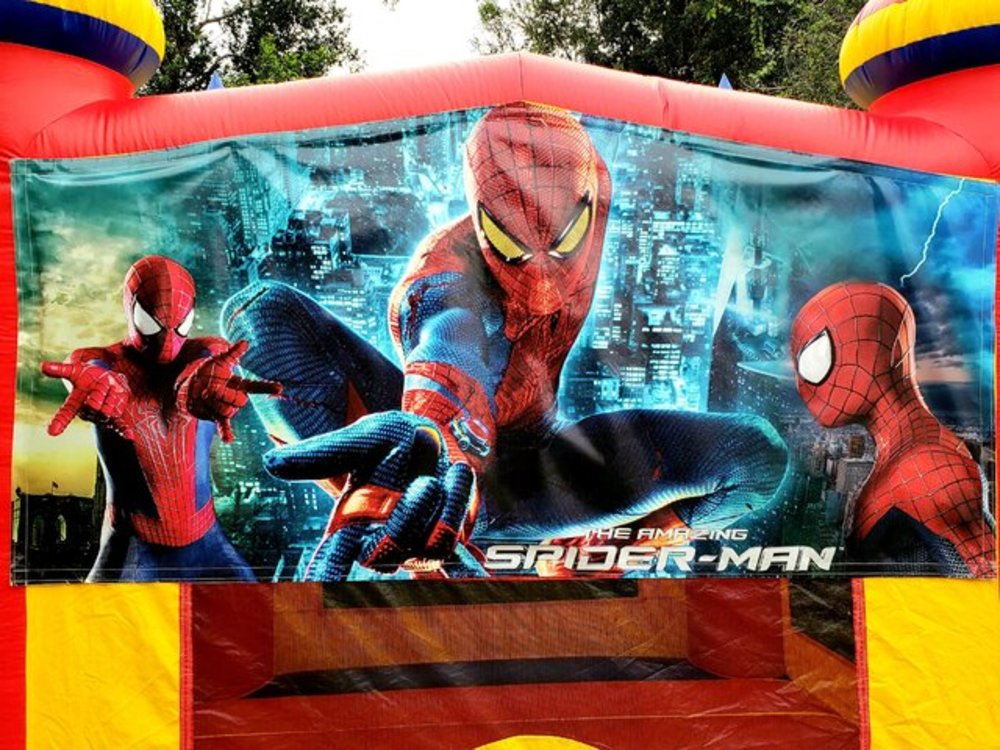 Spiderman fans! here is your chance to test your spider-like abilities in this Spiderman-themed medium-size 14 ft X 14 ft castle, a perfect centerpiece for your event.