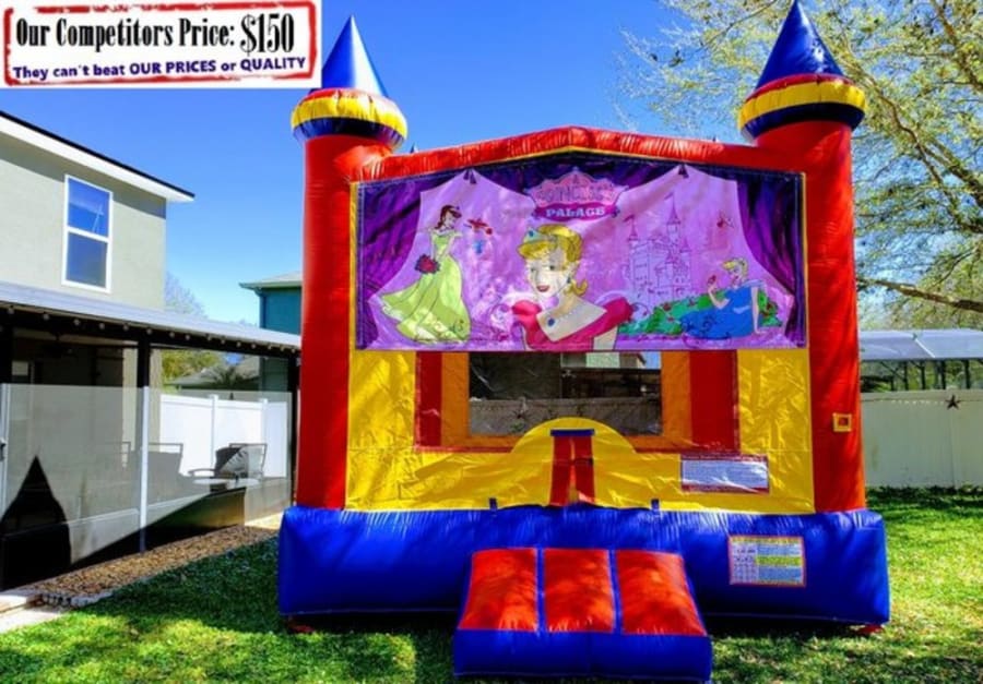 Perfect for little princesses. It's a medium size 14 ft X 14 ft castle, a great centerpiece for any event with or without princesses in attendance.