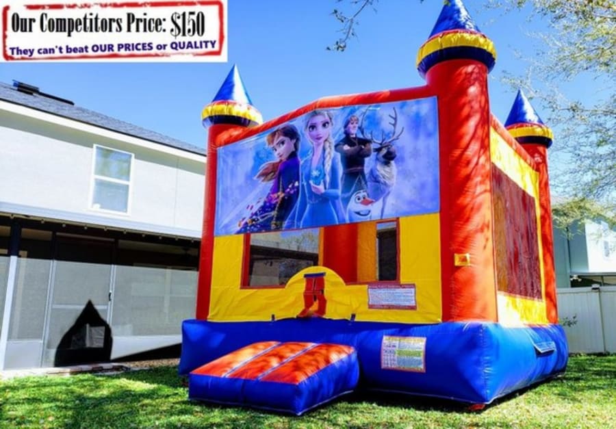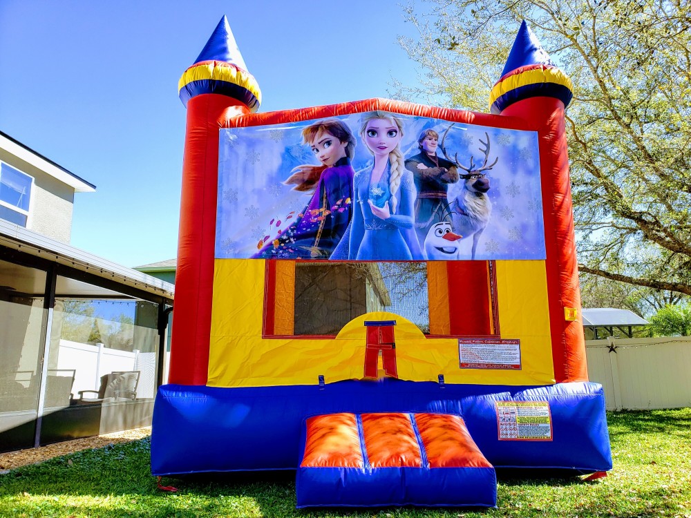 This beautiful Frozen Theme Castle has the whole Frozen crew represented. It's a medium size 14 ft X 14 ft castle, a great centerpiece for any event.