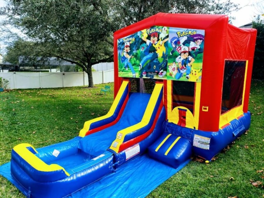 Does your little Pokemon fan wanna catch 'em all? Well, then this Bounce house is perfect for you. It is a 14ft x 14ft castle with an added climb to get to the 6ft slide and a 5ft wide pool to dip in. The total size is 16ft tall by 14 ft wide by 25 ft long.
