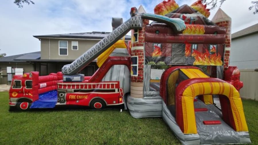 ๐ Book your Firetruck Dual Lane Slide Bounce House today!