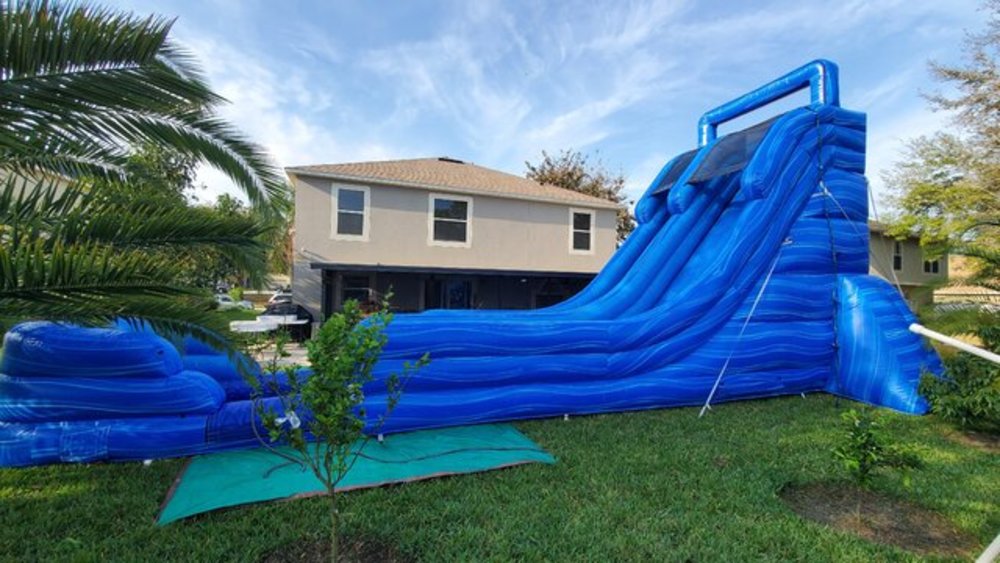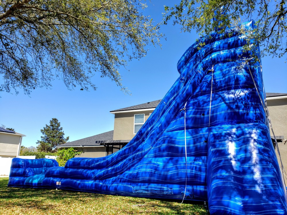 This GIANT 24 feet tall by 18 ft wide by 46 feet long water slide is great for all ages, including adults, and for any party type: water day, fundraisers, birthdays, family reunions, backyard parties, block parties, church or school festivals, etc.